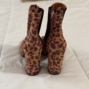 Forever 21 Cheetah Print Boots in Faux Suede Pointed Toes Block Heels Size 8