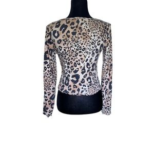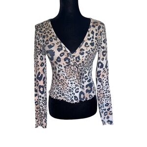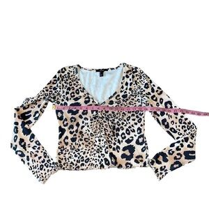 Forever 21 Cheetah Print Crop Top Long Sleeve Shirt Size M