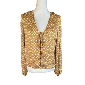 Elevate your style with this Forever 21 blouse featuring a chic geometric print. The mustard yellow and white color palette ensures a trendy and eye-catching look.