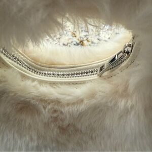 Stylish faux fur handbag in a soft beige color. Perfect for adding a touch of elegance to any outfit.