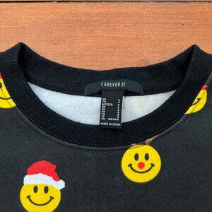 Forever 21 Christmas Happy Face Emoji Pullover Crewneck Sweater Sweatshirt Sz S