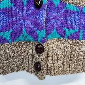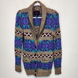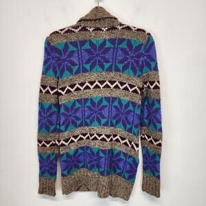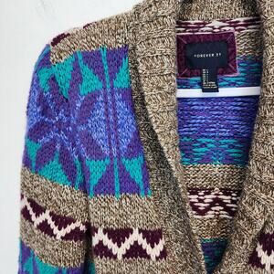Forever 21 Chunky Grandpa Cardigan Sweater Size L Fair Isle Nordic Shawl Neck