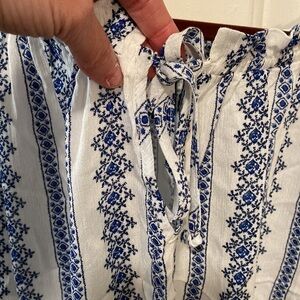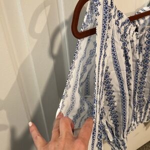 Get ready to turn heads with this stunning cold shoulder shirt from Forever 21! It's perfect for any summer or resort occasion, with a beautiful key hole tie neck and an elastic bottom that creates a flattering silhouette. Made with high-quality materials and in ready-to-wear condition, this shirt is a must-have addition to any fashion-forward wardrobe. Don't miss out on this perfect piece!