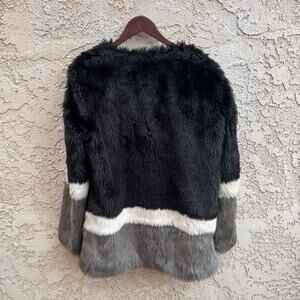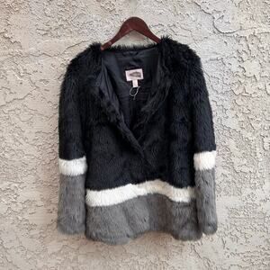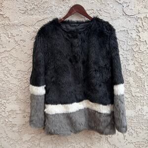 Forever 21 Colorblock Faux Fur Jacket Black White Gray Size Medium
