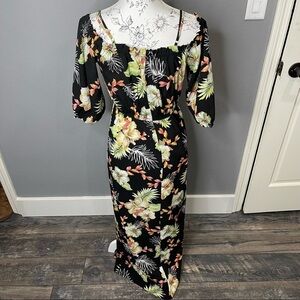 Forever 21 Contemporary Black Tropical Floral Maxi Cold Shoulder Dress Sz Small.