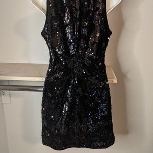 Forever 21 Contemporary Black Velveteen & Sequin Fitted Dress