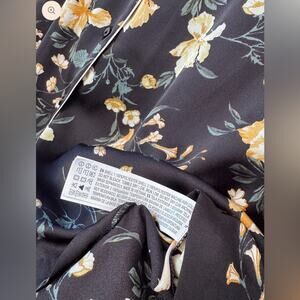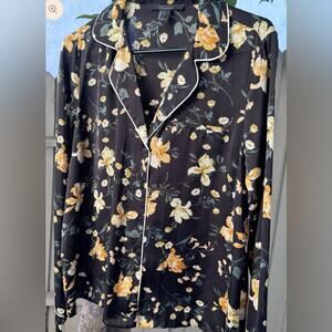Forever 21 Contemporary Floral Pajama-Style Button Down – Black/Yellow Size L