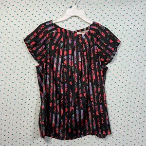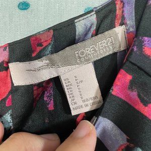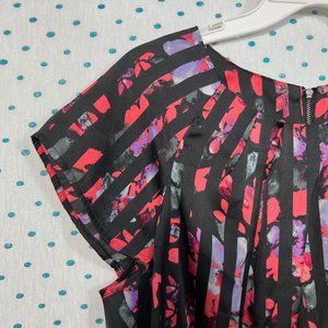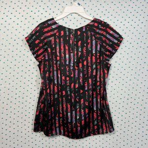 * Forever 21 Contemporary Red & Black Striped/Floral Blouse w/ Exposed back zipper.