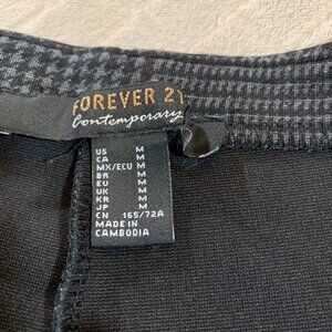 Forever 21 Contemporary Women Medium Pants Dark Gray Plaid Tuxedo Stripe Pull On.