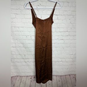 Forever 21 Contemporary bronze satin viscose midi length slip dress, sz XS, NWT
