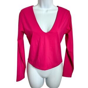 Forever 21 Contour Sculpt Shape V-Neck Long-Sleeve Crop Top Sz Large Pink New