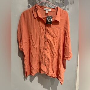 Chic coral blouse with button-up front. Ideal for everyday style.