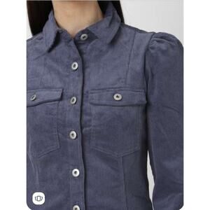 Forever 21 Corduroy Mini Shirt Dress Small Button Up Long Puff Sleeves Preppy