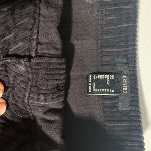 Get the perfect cozy-chic look with this stylish Forever 21 corduroy mini skirt! This skirt is made from soft, textured corduroy in a deep, black color (looks like black or very dark gray).