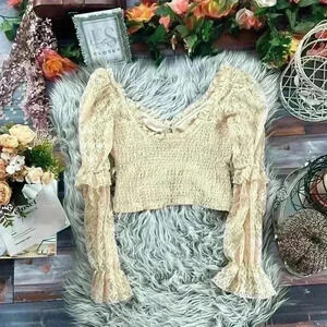 Forever 21 Cottagecore Sparkly Lace Puff Sleeve Cropped Blouse, S