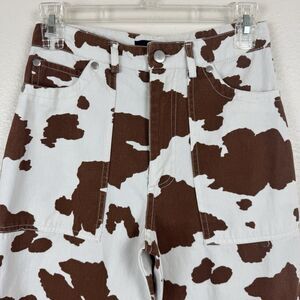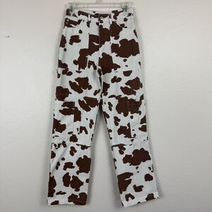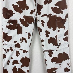 Forever 21 Cow Print High Waist Straight Leg Carpenter Cargo Jeans Brown Cream S