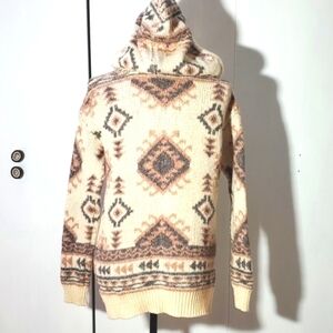 Forever 21 Cream Aztec Boho Neutral Pullover Hoodie warm Cozy oversized Sz.S/M