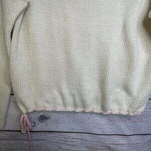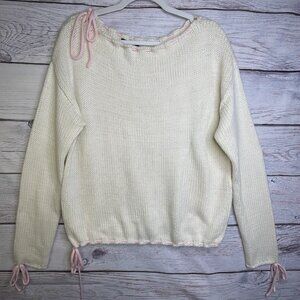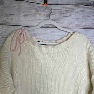 Forever 21 Cream Knit Sweater Size M Bows Long Sleeve Fairy Croquette Whimsical