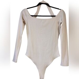Forever 21 Cream Long Sleeve Cut Out Bodysuit