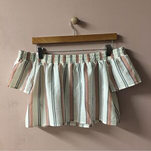 Forever 21 Cream Striped Off-the-Shoulder Crop Top Size S NWT