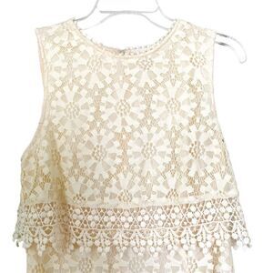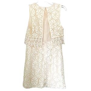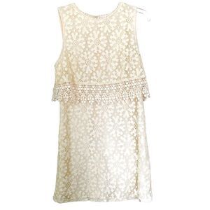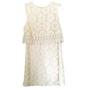 Forever 21 Cream White Eyelet Lace Mini Shift Dress Size Medium Boho Embroidered
