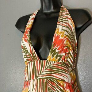 Forever 21 Cream and Orange Tropical Plunging halter Sundress