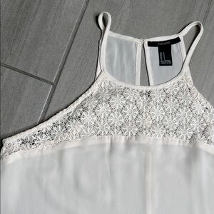 Forever 21 Cream and White Tank Top with Lace Detailing
