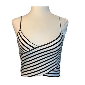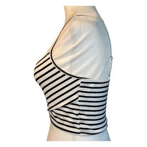 Forever 21 Criss Cross Stripe Ribbed Knit Crop Top Black White V-Neck S