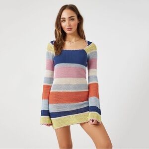 Forever 21 Crocheted Striped Mini Dress Sz S