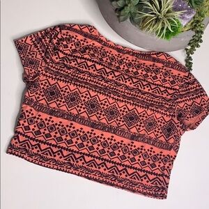 Forever 21 Crop Ancient Aztec Print coral crop top T-shirt orange
