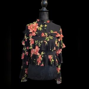 Forever 21 Crop Top Floral Ruffle L/S Top Med