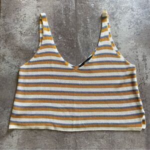 Forever 21 Crop Top Ribbed Stripe V Neck Mustard Periwinkle