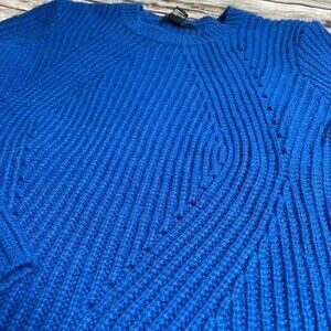 Forever 21 Cropped 3/4 Length Sleeve Chunky Blue Pullover Sweater Small SM S