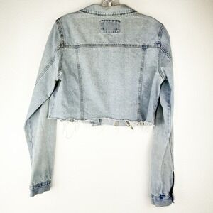 Forever 21 Cropped Denim Jacket Women's Size L Light Wash Distressed