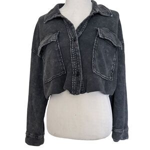 Forever 21 Cropped Gray Boho Button Front Lounge Casual Long Sleeved Shirt