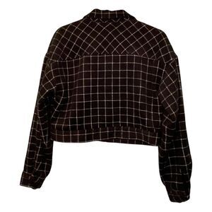 Forever 21 Cropped Plaid Blazer Black White Tweed Knit Long Sleeve Notch Collar