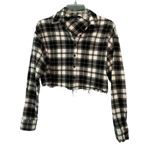 Forever 21 Cropped Plaid flannel Black and White Shirt Top Blouse Small