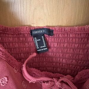 Forever 21 Cropped Rusty Red Pink Corset Style Top with Puffy Sleeves
