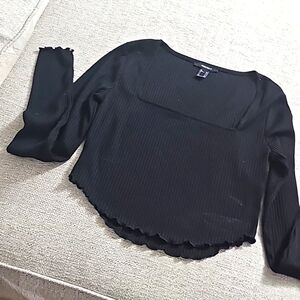 Forever 21 Cropped Sweater square neckline black size medium