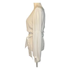 Forever 21 Cropped Wrap Top in White Rayon Knit. It features Puff Long Sleeve, a Round Neck, an Attached Tie and is a Pull-Over style. t is great for New Year's Eve, Date Night, Night Out with the Girls, and Fancy Family Dinner. It would make a great Christmas Hanukkah Valentine’s Day Birthday or any Holiday gift!