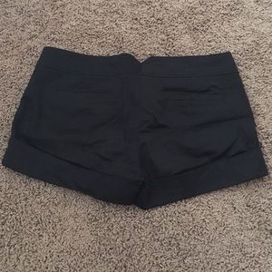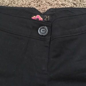 97% cotton, 3% spandex. Super cute cutout in the back at waist line. Two pockets in the front are accessible, two in the back are for show. Zipper and two button closure. Measurements: waist - 15 inches across, side length - 9.5 inches down. Worn only hand full of times. In perfect and clean condition. No holes, stains or pulls. Comes from a pet/smoke free home.