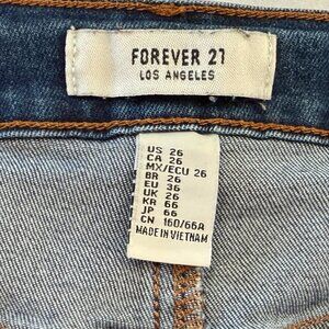 Forever 21 Curvy Fit High Rise Stretchy Rolled Cuff Blue Denim Jean Shorts