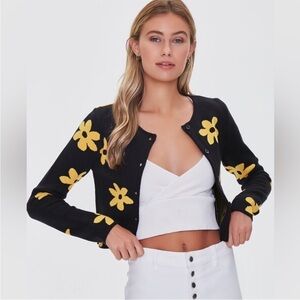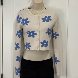 Forever 21 Daisy Crop Cardigan Cream Blue Small Preppy Twee Coquette Spring Chic