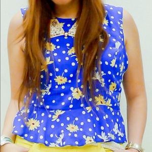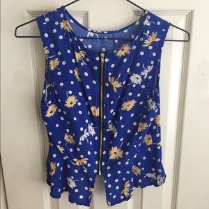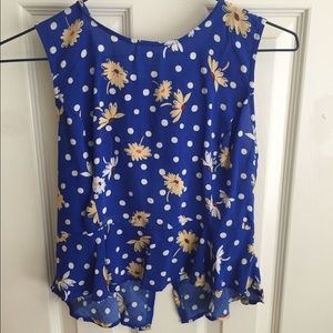 Forever 21 Daisy floral print top. Fits slightly cropped. Can fit size XS-M. Exposed back zipper. Has cute subtle peplum flare. Offers are welcome and price is NOT firm! Add to a bundle and save!
