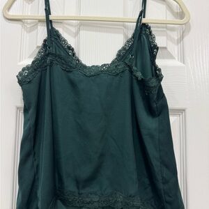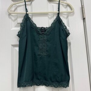 Elegant dark green camisole with lace trim. Ideal for layering or standalone wear.