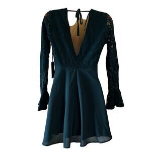 Forever 21 Dark Teal Special Occasion Dress Juniors Size Small Lace Long Sleeve
