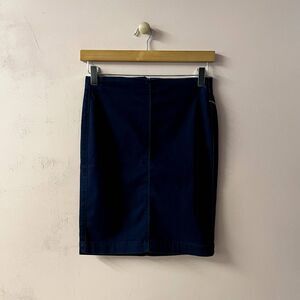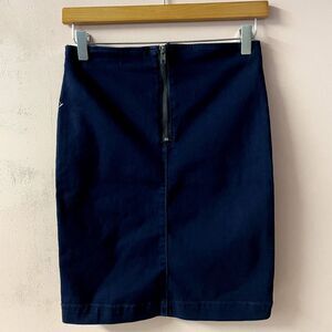 Cute indigo blue knee length denim pencil skirt! It has a zipper in the back. This would look great with a fitted white or back top tucked into it with a cropped cardigan and some platform Dr. Martens for a grungier look! NWT! Never been worn! Approximate measurements shown in photos. Feel free to ask questions or make an offer!
