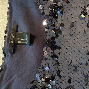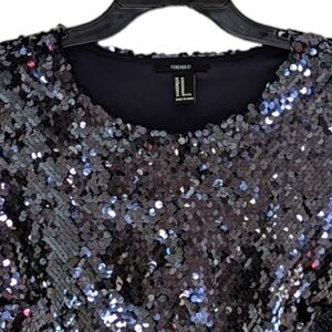 Forever 21 Deep Navy Sequined Short Sleeve Crop Top NWOT Size M