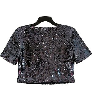NWOT Forever 21 Deep Navy Sequined Short Sleeve Crop Top.