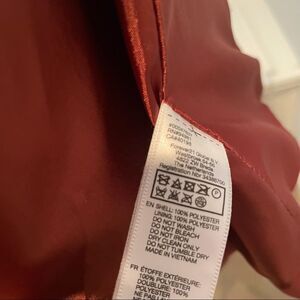 Color is more of a rust than maroon or orange, with a lighter colored lining inside. Front buttons are functional and are solid gold in color.